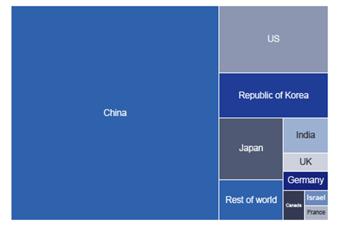 La presenza di questi paesi nel panorama globale dei brevetti dimostra che, nonostante il predominio cinese, l’innovazione in questo settore è un fenomeno veramente globale.