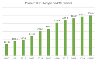 Lo spumante italiano Prosecco è il fenomeno mondiale di maggior successo nel settore enologico degli ultimi decenni. 8.000 produttori, 500 milioni di bottiglie immesse nel mercato mondiale nel 2020 (con l’export che rappresenta il 78% del totale), 2,4 miliardi di fatturato con una crescita esponenziale negli anni. In una parola, un boom.