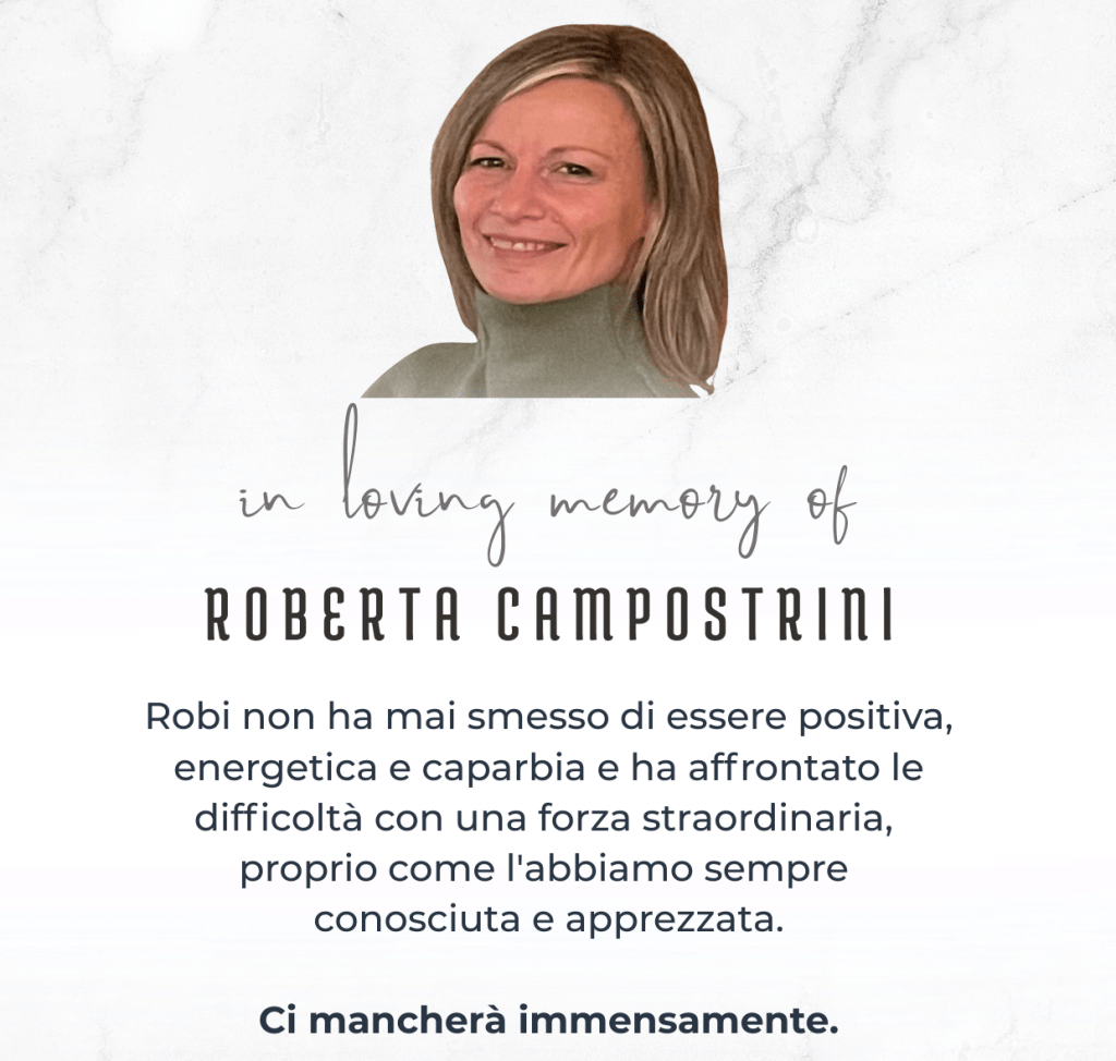 Robi non ha mai smesso di essere positiva, energetica e caparbia e ha affrontato le difficoltà con una forza straordinaria, proprio come l’abbiamo sempre conosciuta e apprezzata.