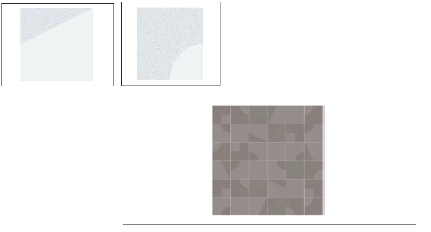 - evidente la contraffazione di uno dei prodotti singoli (piastrella con quarto di cerchio nella parte inferiore destra) “poiché praticamente identico al disegno registrato, differenziandosi solo in modo minimale della trama della zona esterna al quarto di cerchio, il che tuttavia non influenza la sua originalità e il suo aspetto generale.”