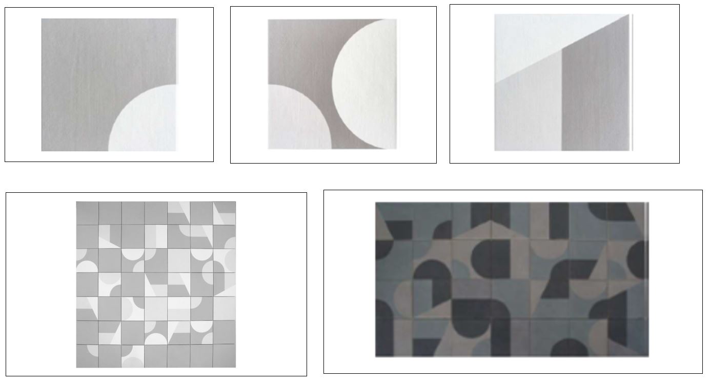 Esistono poi aziende che credono nell’istituto del design comunitario e che da tempo proteggono le loro collezioni come nel caso qui di seguito illustrato, in cui una nota azienda ceramica ha tutelato una collezione composta da piastrelle in gres porcellanato smaltato che si articolano in una alternanza tra fondi tinta unita e pattern grafici a più colori.